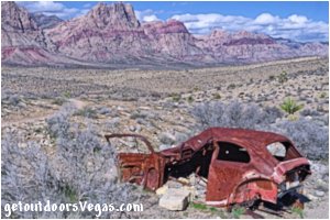 Approximate distance: 21 miles+- from central Vegas Strip to the Chevy (1941) parking area and trailhead.