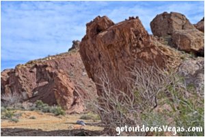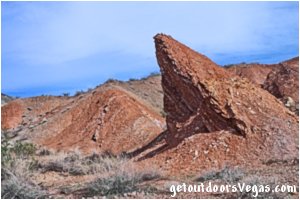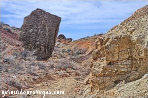 Approx. 46 miles from central Vegas Strip via I-15 South, I-215 East, NV-564 East (E. Lk. Mead Pkwy.) and NV-167 (Northshore Rd.) to the Razorback Wash Trailhead (WP2).